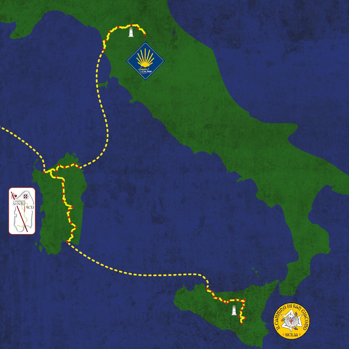 Ogni cammino è un incontro, una storia, un'esperienza unica che ti aspetta. Visualizza i tracciati dei cammini di Santiago in Italia e preparati a seguire la freccia gialla!